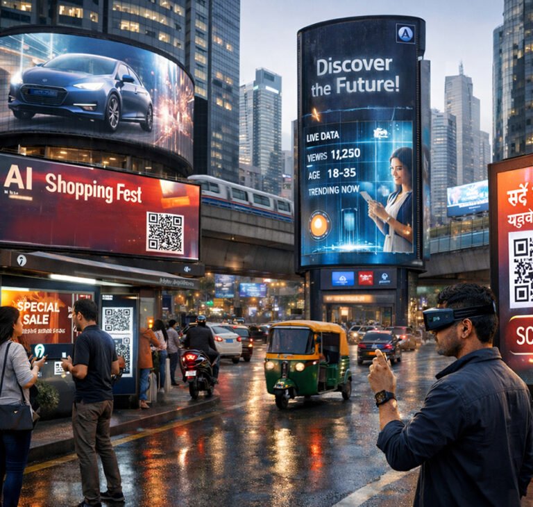 In the coming years, AI-based advertising in Gujrat: such as AI avatars, digital brand promoters and interactive screens: will become common across malls, airports, metro stations, colleges and corporate parks. Digital OOH, projection mapping, CGI and experiential advertising will help brands in Gujrat tell their stories in a more engaging and memorable way. Advertising will not only be seen but also experienced by people.